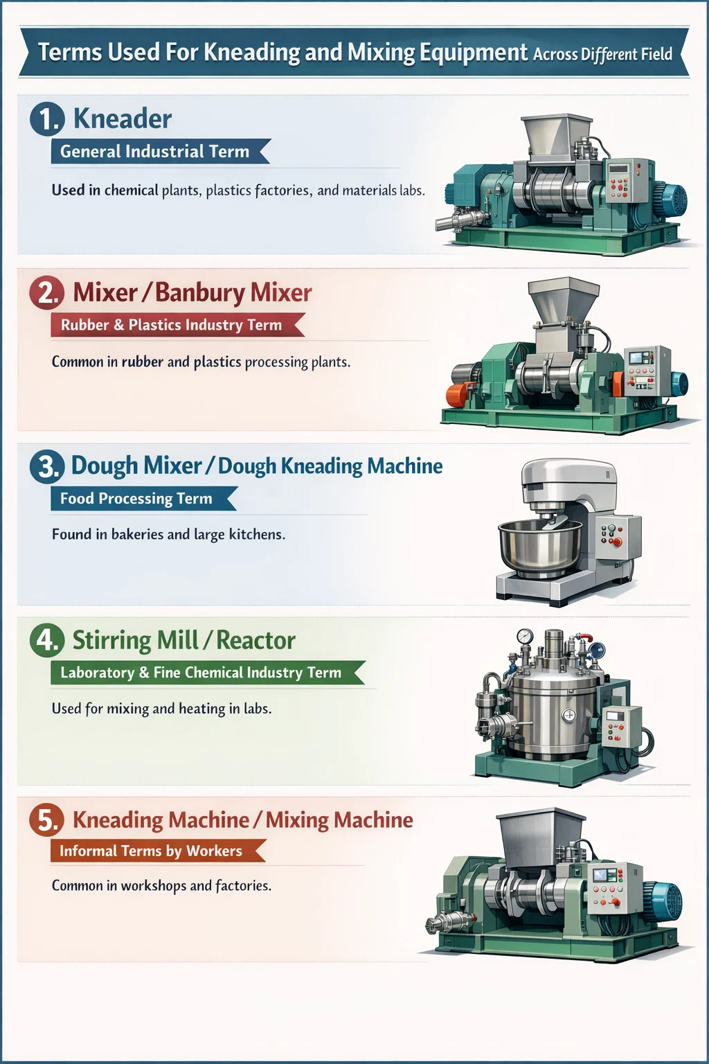 In Chemiefabriken, Kunststofffabriken oder Laboren für neue Materialien ist die am häufigsten verwendete Bezeichnung Kneter.